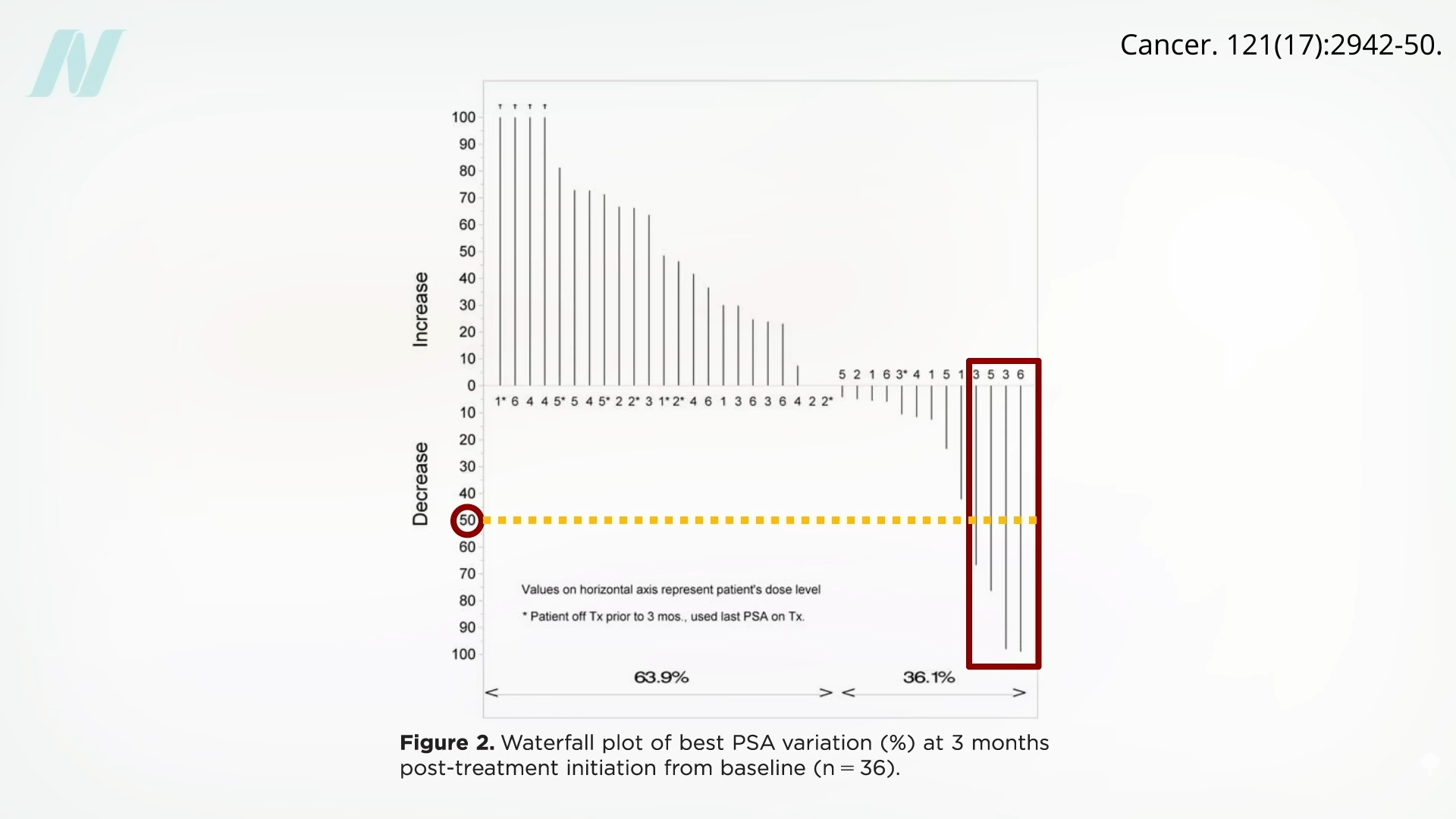 Of the 26 patients who had gotten the button mushroom powder, 4 appeared to respond, meaning they got a drop in PSA levels by more than 50% after starting the mushrooms, as you can see here and at 4:31 in my video.