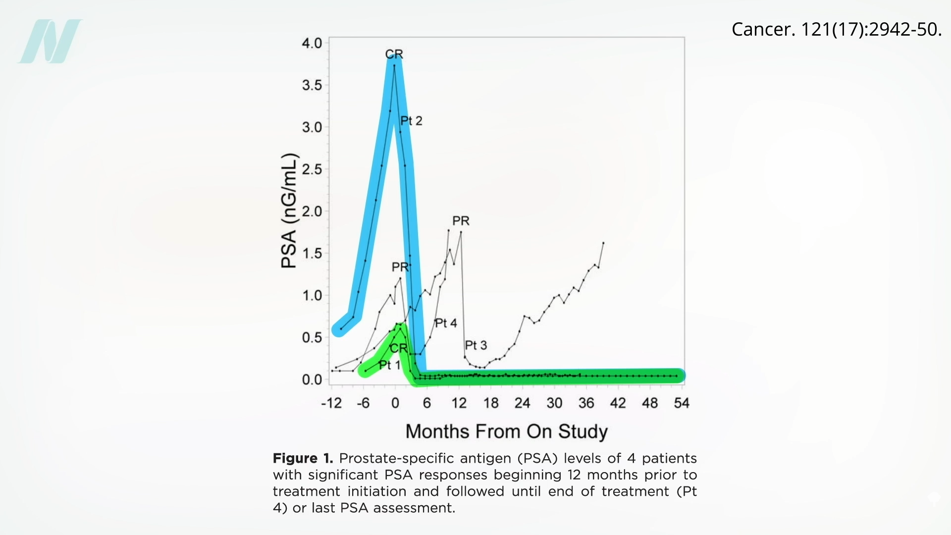 Now, in the majority of cases, PSA levels continued to rise, not dipping at all. But even if there is only a 1-in-18 chance you’ll be like Patients 1 and 2, seen below and at 5:12, you may get a prolonged, complete response that continues.